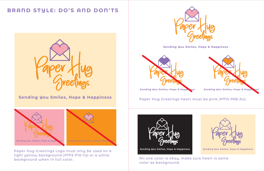Create a logo, formulate a tagline, establish a color palette, and develop a brand style guide for Paper Hug Greetings. Craft a comprehensive 3-page brand guide for the client's future reference.
